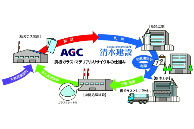 当社は、資源循環社会の実現に向けた取り組みの一環として、超高層ビルの解体現場から排出された廃板ガラスをガラス製品の材料として再資源化するマテリアルリサイクルを実現しました。