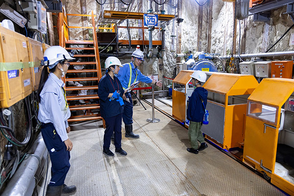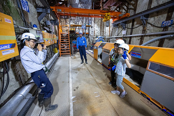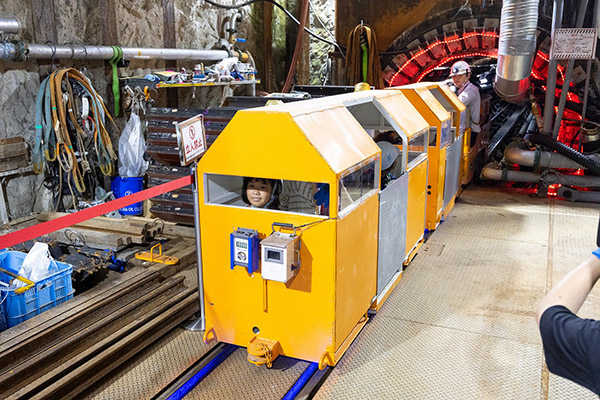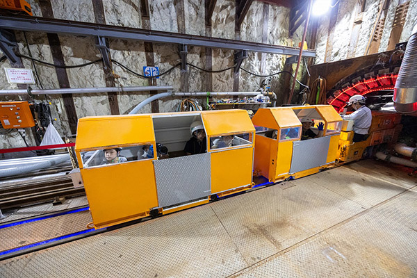 63名の方に、バッテリーロコと呼ばれる充電式の機関車で、トンネルの先端900mまで入って頂きました。