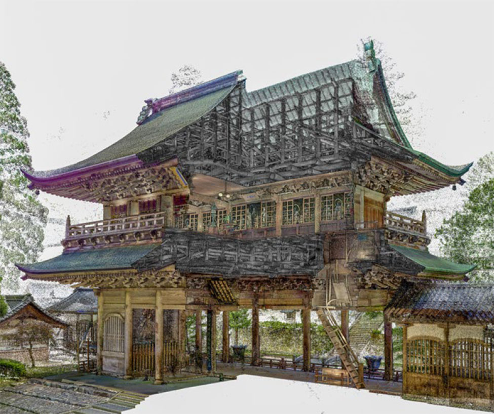 Main temple gate point cloud data (exterior and interior displayed simultaneously)