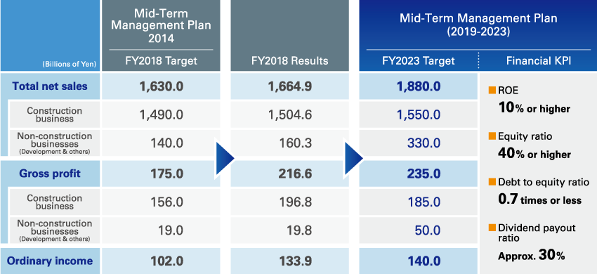 By evolving into a Smart Innovation Company, we aim to achieve consolidated ordinary income of ¥200 billion or higher in fiscal 2030. The composition of consolidated gross profit is 65% for construction, 35% for non-construction businesses. And by region, 75% domestic business and 25% overseas.