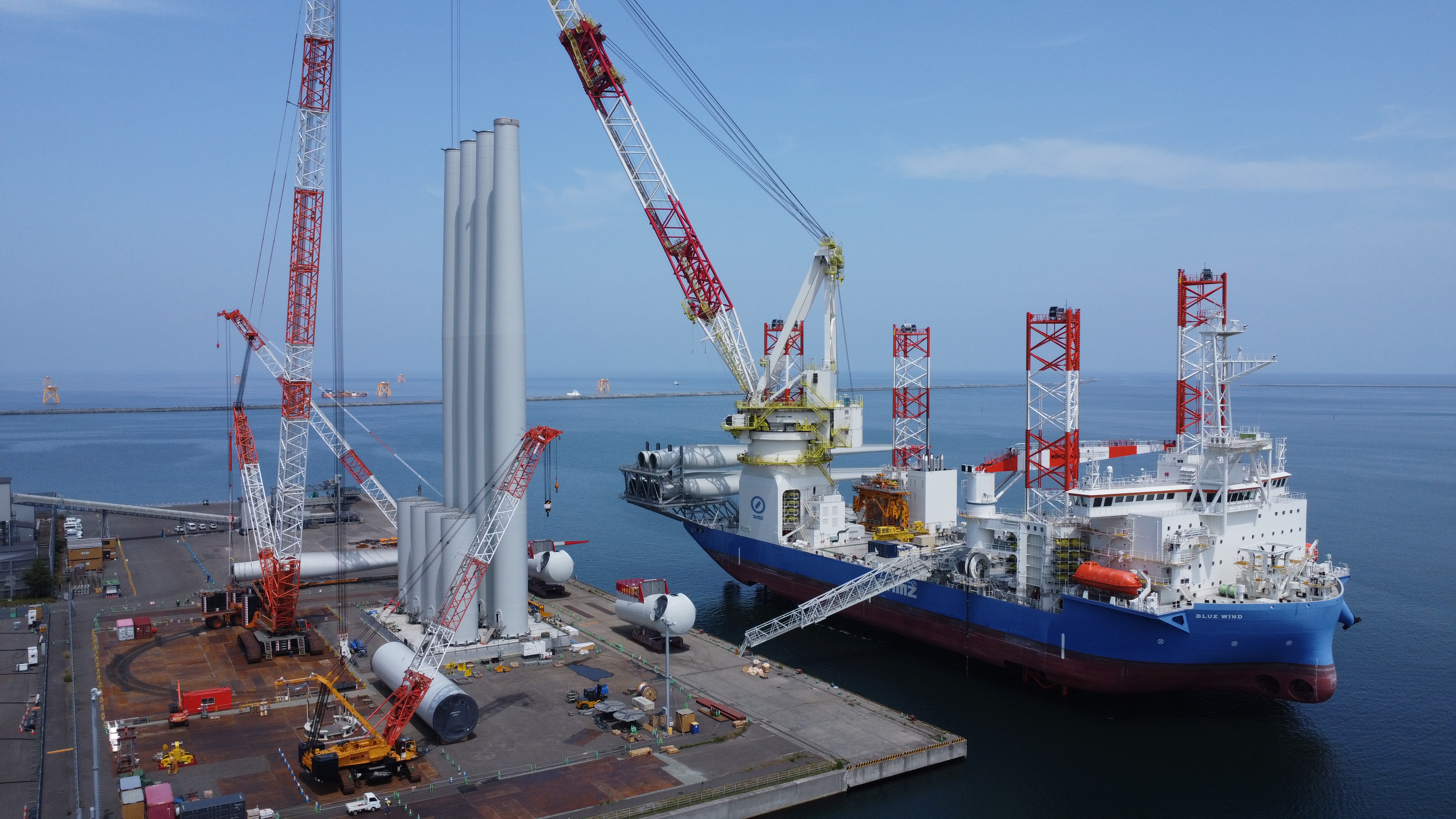 2022年10月に完成し、2023年1月より稼働しています。 急速に進む風車の大型化にも対応しており、15MW大型風車の基礎および風車施工を一貫して行うことが可能です。