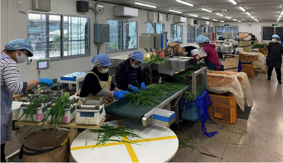 ※出荷調整作業:ニラ等の収穫直後の枯れ葉や不良葉を取り除き、計量結束を行って、出荷できる状態にする作業