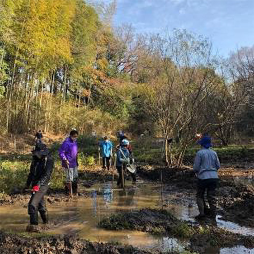 大きな特徴は、地域の社会課題解決を目指し、産官学民連携で新たな人と自然のかかわり方を模索する「リビングラボ※2」のアプローチです。コアメンバー・連携メンバーがしみず谷津を実験フィールドとして谷津の新たな魅力や活用策を探索し、得られた学びを積極的に共有・発信しています。地域の水循環や生態系の回復への貢献とともに、都市部との共創や自然体験・越境学習の場の創出等、様々な機能や価値が生み出されています。