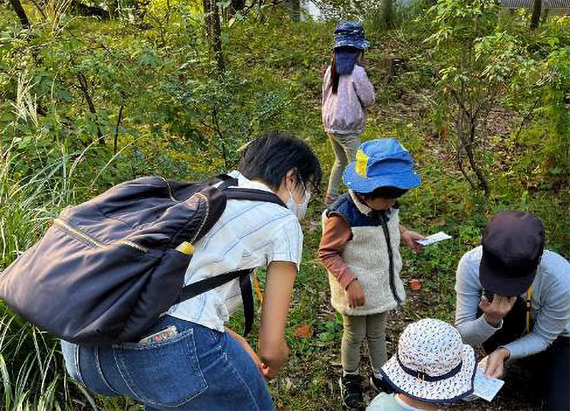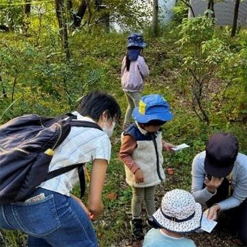 NPO法人マザーツリー自然学校と連携し、再生の杜において乳幼児の親子向けの自然体験プログラム「まちなか森」を実施しました。木の実や落ち葉等、企業緑地の様々な自然素材を活用することで、小さな子どもたちの自然体験や子育て支援の機会を創出することができました。