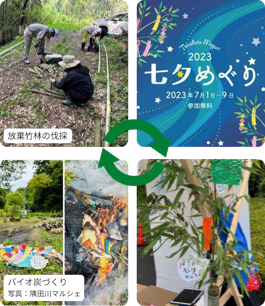 イベント終了後には、使用済みの七夕飾りの竹を回収し、バイオ炭として循環利用を行い、郊外の自然再生・脱炭素への貢献にもつなげました。