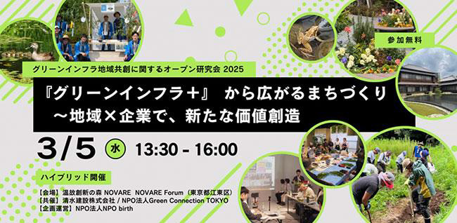 地域×企業によるグリーンインフラ地域共創の普及・展開を目指し、2023年から年1回、産官学民が集まる対話の場としてオープン研究会を開催しています。
