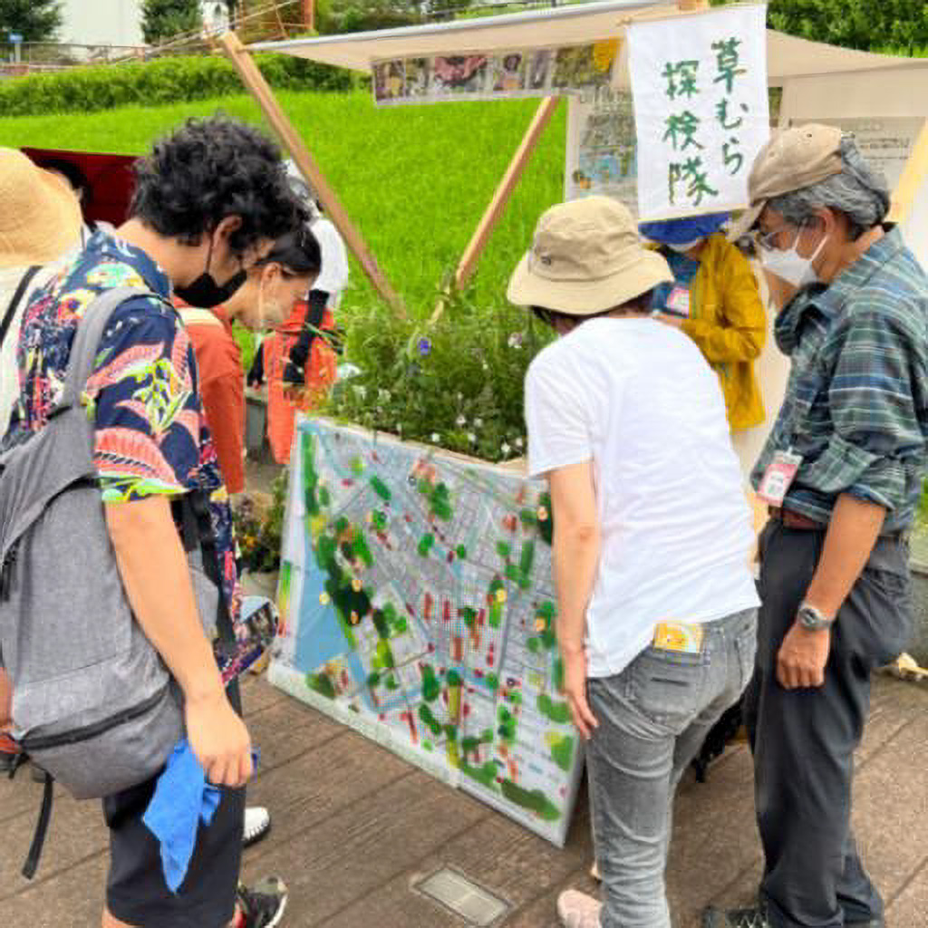隅田川マルシェ実行委員会と連携し、東京都江東区で開催された街めぐりイベント「七夕めぐり」の特別企画として、再生の杜の見学ツアーを2023年・2024年・2025年に実施しています。近隣の子どもたちや親子連れ等を中心にいずれの年も約100名の方々にお越しいただきました。普段一般の方が訪れる機会の少ない再生の杜を暫定利用することで、まちなかの自然共生について体験する機会を創出・拡大しました。