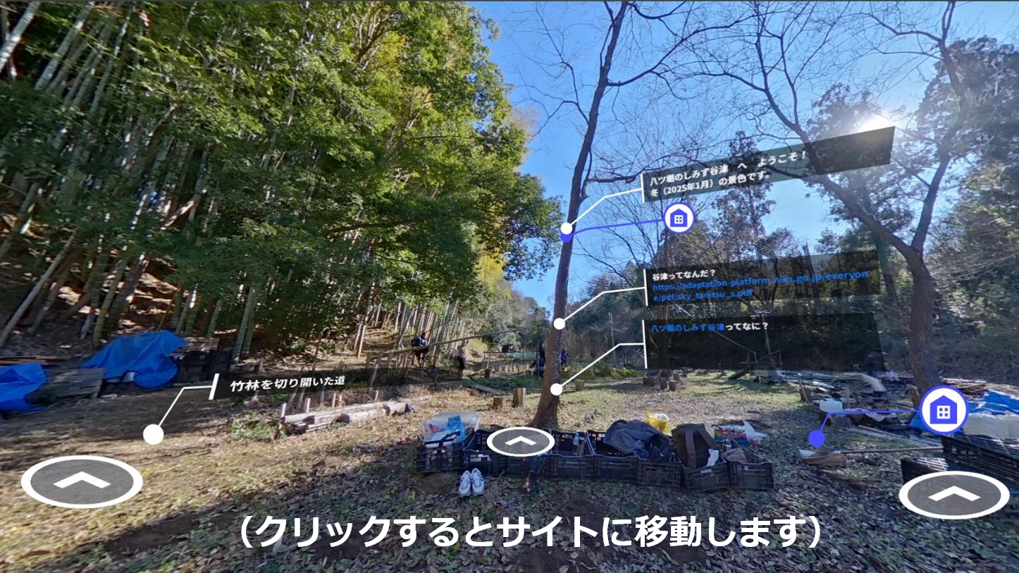 「八ツ堀」とは現地の小字名、「しみず」とは湧き水の別称、「谷津」とは台地が侵食されてできた谷地形を表す言葉です。