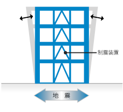 建物の揺れによる振動エネルギーをダンパーが吸収して、建物の揺れを小さくします。
