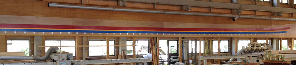 日本伝統建築の美しさを決定付ける大切な要素として軒廻りのデザインがある。細長い平面形状のため、妻面9.2mに対し正面60.5mと大きく長さが異なる軒廻りを、破綻なく納めるかが設計のポイントとなった。真直ぐな長い線は、中央がむくって見えてしまうため、平らな所のない総反りとし、長く単調にならないよう隅に行くほど勢いのある曲線を目指した。総反り、捻れ軒、隅伸びなど高度な規矩術を駆使してまとめ、境内の既存社殿と調和する優美な外観を実現した。