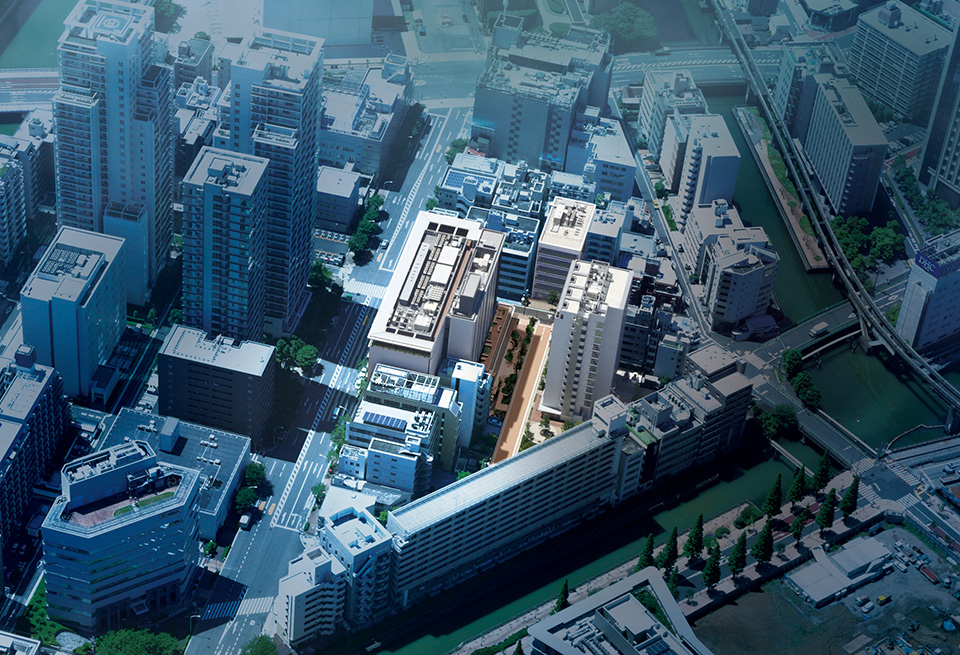 同時開発のメリットを活かし、既成市街地で初めて街区間をまたぐスマートコミュニティを構築した。3敷地一体の電力・熱融通を可能とするために、公道下に自営のライフラインを敷設しており、防災への備えと地域の交流を兼ね備えたまちづくりの社会的モデルを目指した。