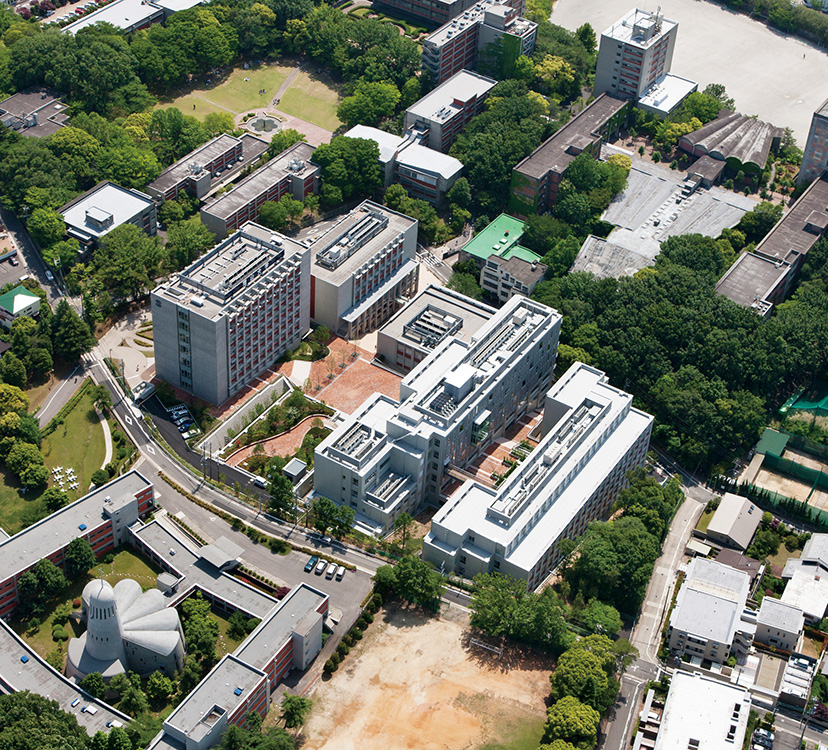 キャンパス再編の第1期工事となる本計画は、大小教室、研究室、食堂、店舗などの複合校舎である。大学創設時からのアントニン・レーモンドのデザインを引き継いでおり、太陽光を和らげる南面の掘りの深いルーバーは、フルプレキャストコンクリート構法とし、現代の手法で歴史をつないでいる。