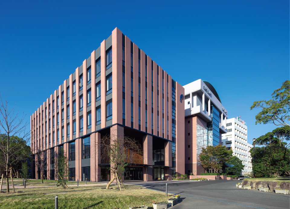 緑豊かな丘にある純真学園大学のキャンパス再編の一環として計画された「森の表情」をコンセプトとするキャンパスの顔となる建物である。