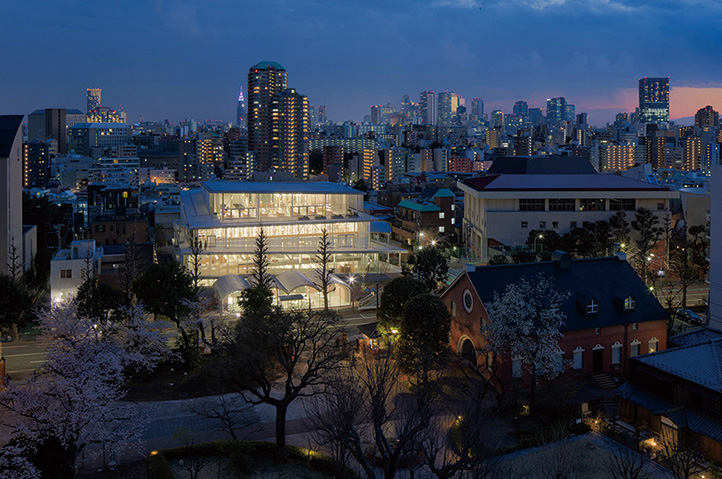 日本女子大学120周年記念事業のキャンパス再整備の一環として計画された図書館である。大通りに面した敷地において大学の新しいシンボルとなるとともに、学生の新しい学習と交流の場となることが求められた。
