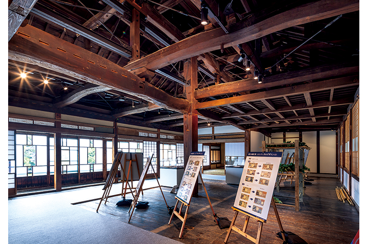 旧渋沢邸「中の家」主屋は明治28(1895)年に再建した田の字型の養蚕農家であり、渋沢栄一翁が生まれ故郷としてたびたび帰郷し滞在していた建物である。耐震性を向上させ室内を安心して見学できるようにすること、文化財の価値を継承し更なる活用を図ることを目指し、改修をした。主屋南側では既存木部材を極力再利用し、既存壁・垂れ壁の補強などを行い、創建当初の開放的な座敷・蚕室を再生した。さらなる建物活用として、北側下屋には展示室を設け、渋沢栄一翁・渋沢家への理解が深まる展示を行っている。耐震性向上のため、耐力壁に加え、通し柱である大黒柱・中黒柱及び小屋組鉄骨補強による『耐震フレーム』を建物全体で構築した。また和小屋の力強い構成を活かすため、曲がり梁に添わせ鉄骨部材を入れて小屋組補強をしている。