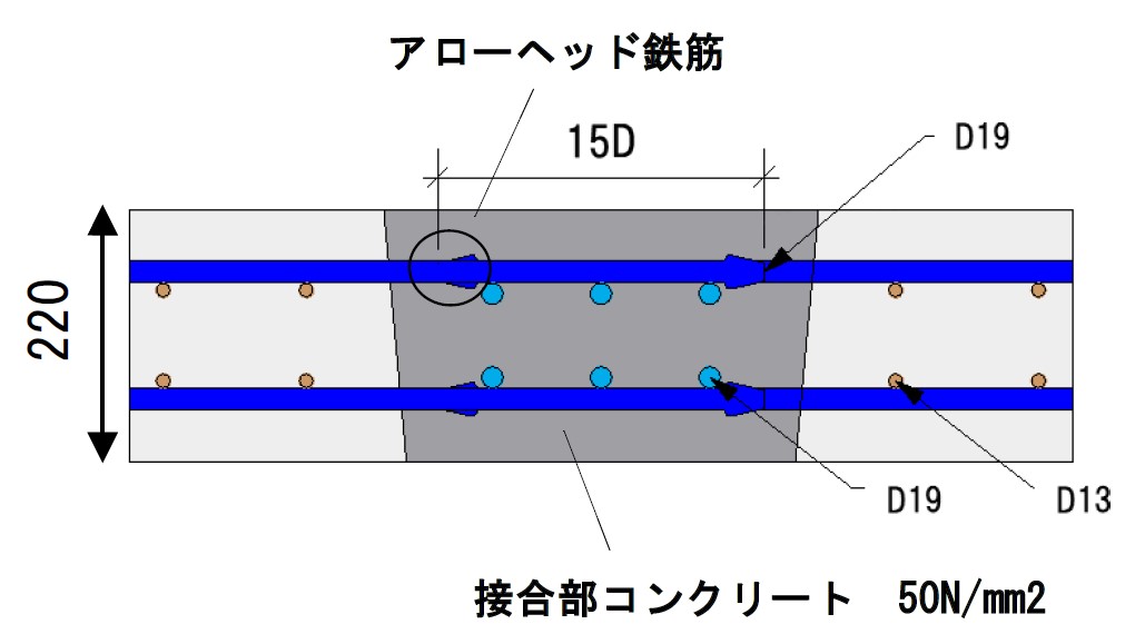 継手工法「アローヘッドジョイント」は、道路橋に使用されるプレキャストPC(プレストレストコンクリート)床版の接合技術です。この工法では、端部に矢尻状の定着体を設けた機械式定着鉄筋「アローヘッド鉄筋」を用いて床版接合部の耐久性向上と配筋作業の合理化を図ります。