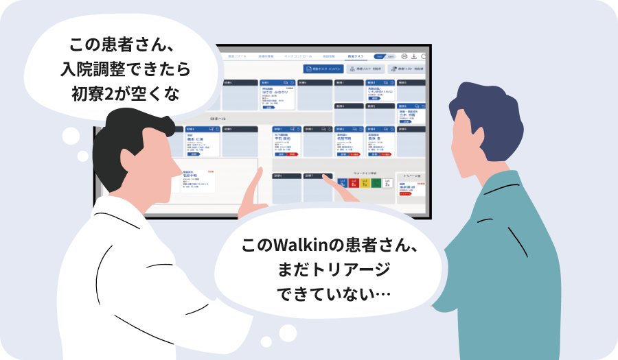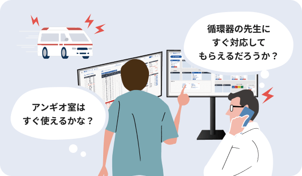 救急患者の情報や処置内容、手術や入院などの調整内容を可視化し、必要なタスクを救急部門で共有できます。