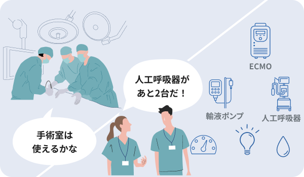 ・手術室やアンギオ、医療機器の使用状況