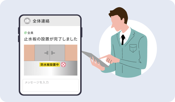 あらかじめ登録した防災タスクの進捗をリアルタイムで確認し、未完了のタスクがあれば担当部署に注意喚起や他部署に応援依頼を行うことができます。
