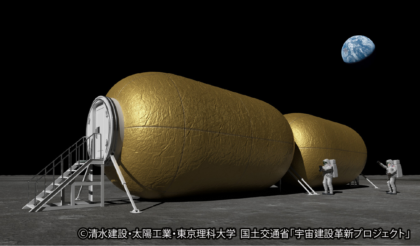 さらに、研究開発テーマとして、インフレータブル構造による月面居住モジュールの開発にも取り組んでおり、低重力環境に適した拠点整備の実現を目指しています。