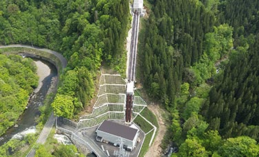 特に冬は積雪に加えて激しい季節風が吹き、地上40mの橋の上での作業はまさに風との戦い、細心の注意が必要でした。この余部ならではの困難を克服するため、現場に「3次元風向風速計」を設置。得られるデータをリアルタイムで技術研究所に転送して風況の解析やシミュレーションを行い、安全な工事進行を実現し、安心な列車運行にも貢献しました。