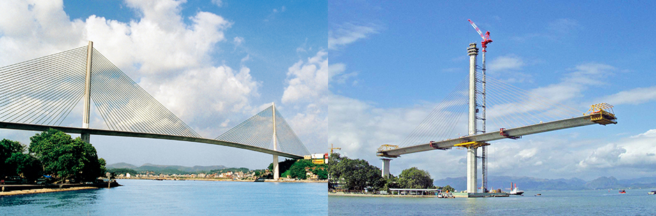 また、2006年には、ベトナムでユネスコ世界遺産に登録された景勝地ハロン湾に架かる海上橋である最大スパン435mの「バイチャイ橋」を完成させ、長大斜張橋の分野で大きな飛躍を遂げました。スパン435mは、1面吊りPC斜張橋※5としては東南アジア最長となっています。