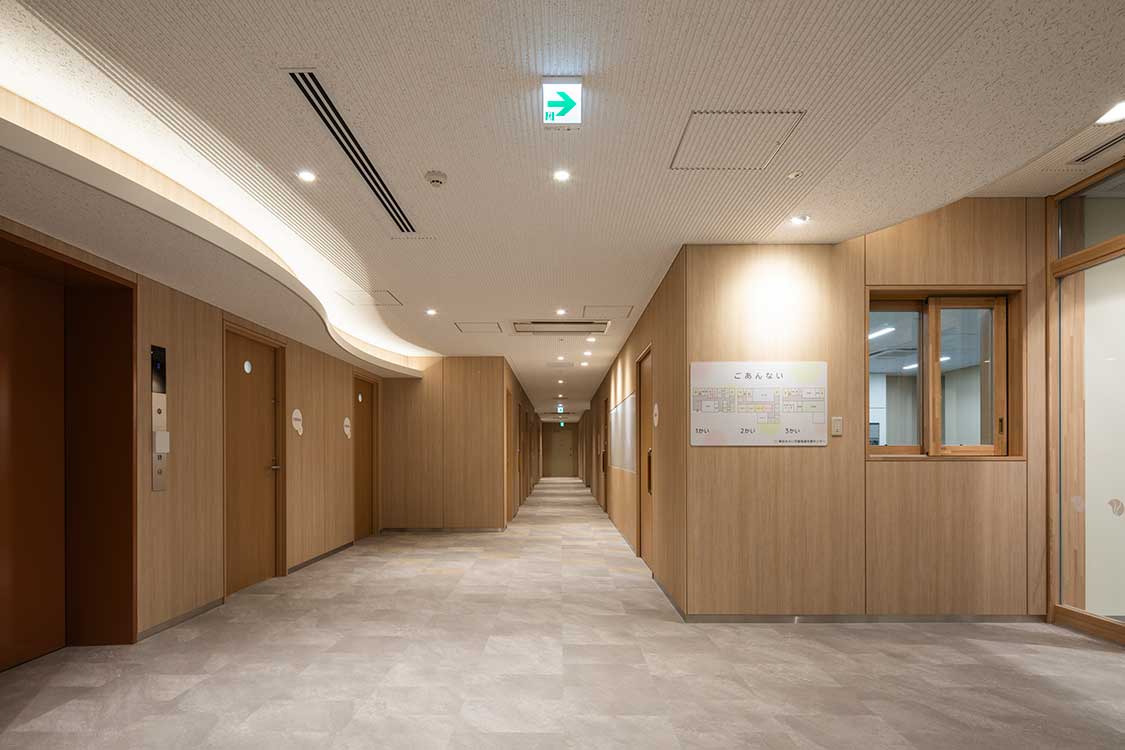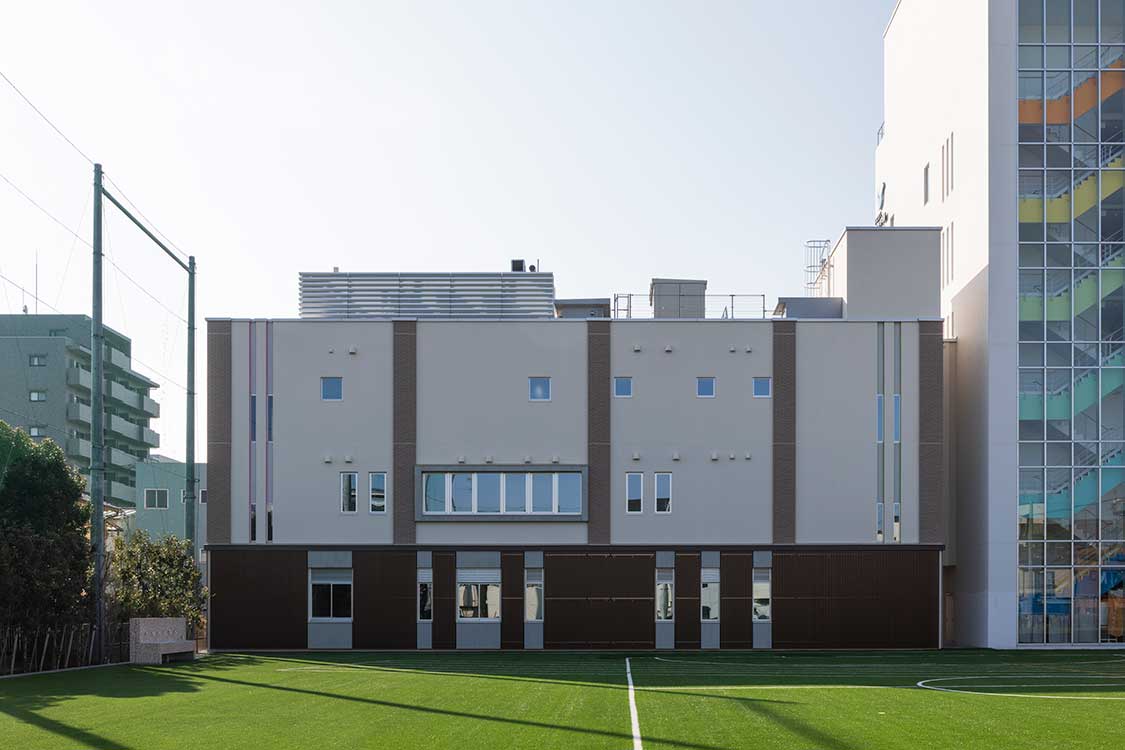 既存校舎が隣にあるため、揚重などに関する計画を綿密に練り、計画通りに実施。無事故無災害で竣工を迎えました。若手担当者が多い中、効率良く工事を進め、全工期4週8閉所を達成。児童が活用する機能を優先しながら、暖かみのある建物を完成させました。