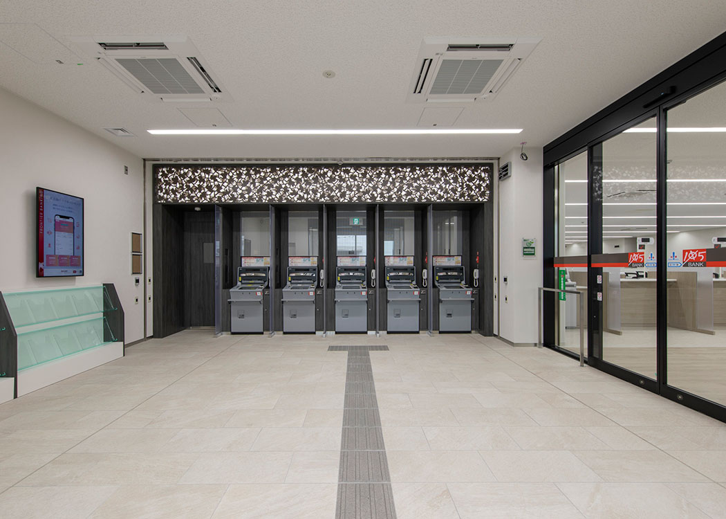 伝統工芸品である鈴鹿墨をイメージしたモノトーンの外観、伊勢型紙などを使用した内装を採用して地域密着を演出しました。サステナビリティ向上のため、「Nearly ZEB」の取得や、誰もが選択肢を持てるオルタナティブトイレを計画しました。